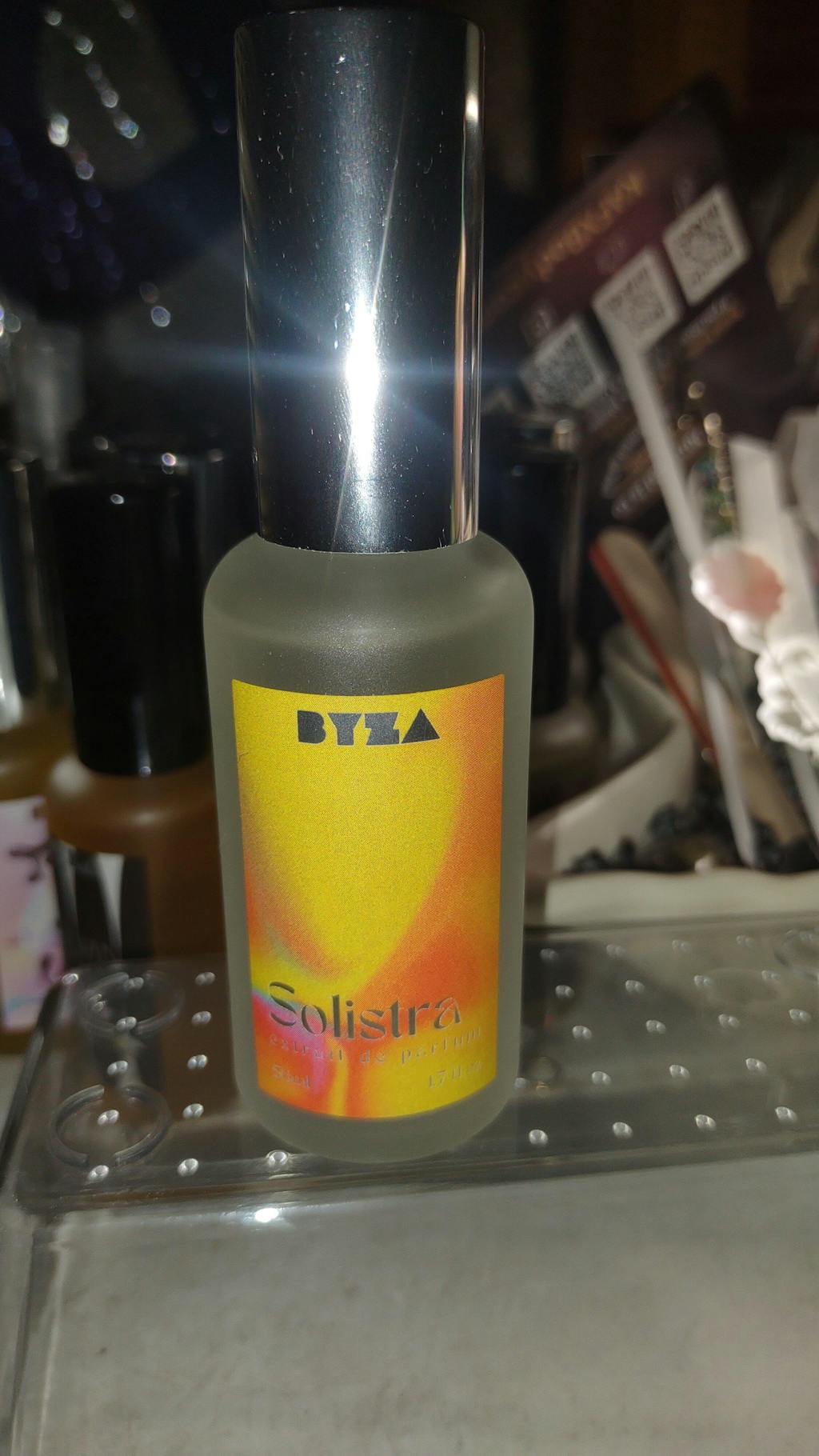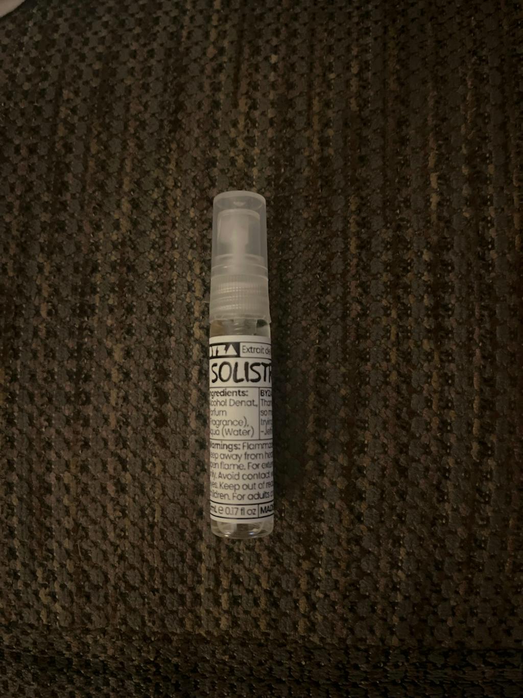Solistra is an ozonic aquatic with a bright, fruity-gourmand heart that opens into sunny citrus and juicy watermelon, feeling like sweet, mouth-watering hard candy. Coconut cream softens the edge with a calming fruity drydown that's both comforting, light, and even a little nostalgic. A warm amber base with a soft hint of cocoa carry into the golden-hours for an overall smooth, playful, summer mood booster.